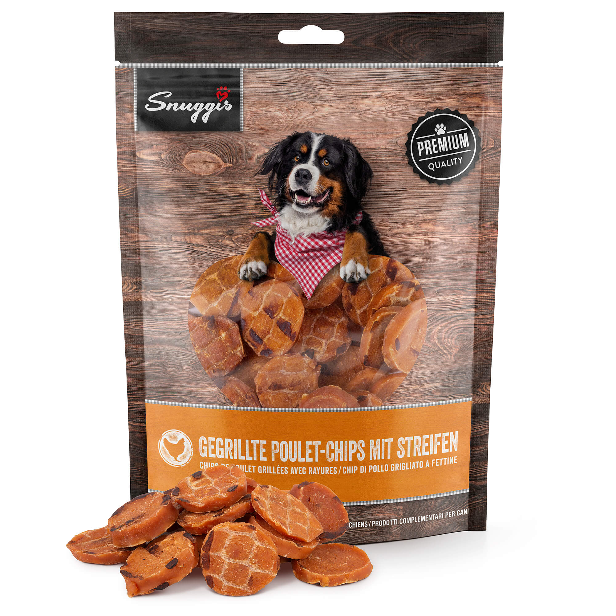 Die Snuggis Poulet-Chips mit leckerem Grillaroma sind ideal als Snack oder Belohnung für zwischen den regulären Mahlzeiten geeignet. Der Snack besitzt einen hohen Fleischanteil und dient deinem Vierbeiner als wichtige Proteinquelle. Das Eiweiss unterstützt die Bildung und den Erhalt der Muskulatur deines Hundes und versorgt ihn zusätzlich mit Energie für ausgelassene Spieleinheiten oder Spaziergänge. Dank der schonenden Verarbeitung ist dieser Snack besonders fettarm und eignet sich aus diesem Grund auch für Hunde, welche zu Übergewicht neigen. Der Beutel besitzt einen praktischen Druckverschluss, so kannst du die Snacks einfach transportieren und sie bleiben länger frisch.