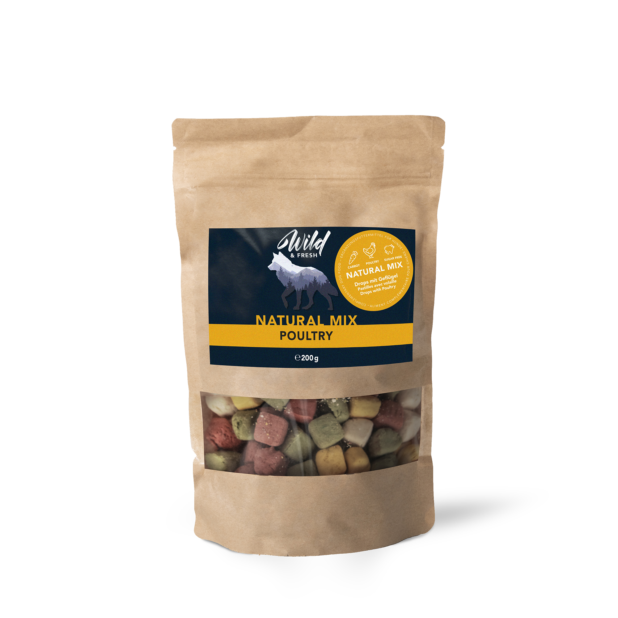 Die Wild & Fresh Natural Mix Bisquits sind der ideale Hundesnack für unterwegs. Nicht nur ist die Verpackung wiederverschliessbar, auch sind die Bisquits in mundgerechter Grösse. Die bunten Snacks sind nicht nur ein echter Hingucker, für deine Fellnase sind sie auch ein richtiger Leckerbissen.